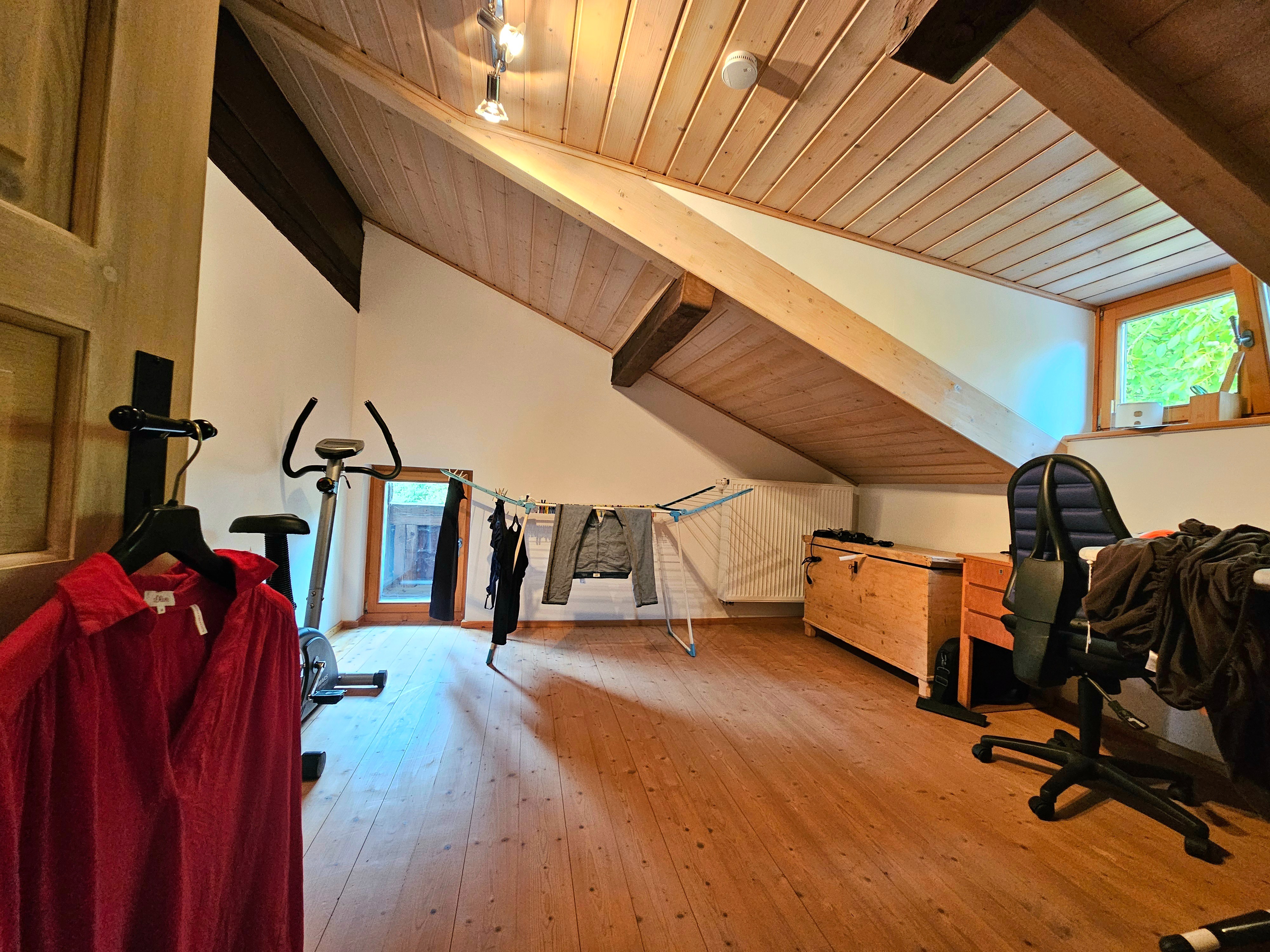 EG: Eingangsbereich mit Diele, Küche mit Einbauküche und Essbereich, separates Esszimmer/Stube, Wohnzimmer mit Kachelofen und Zugang zum Hof, Arbeitszimmer und ein Badezimmer mit Dusche und WC. Zudem verfügt das Erdgeschoss über einen Zugang zur Terrasse mit West-Ausrichtung.