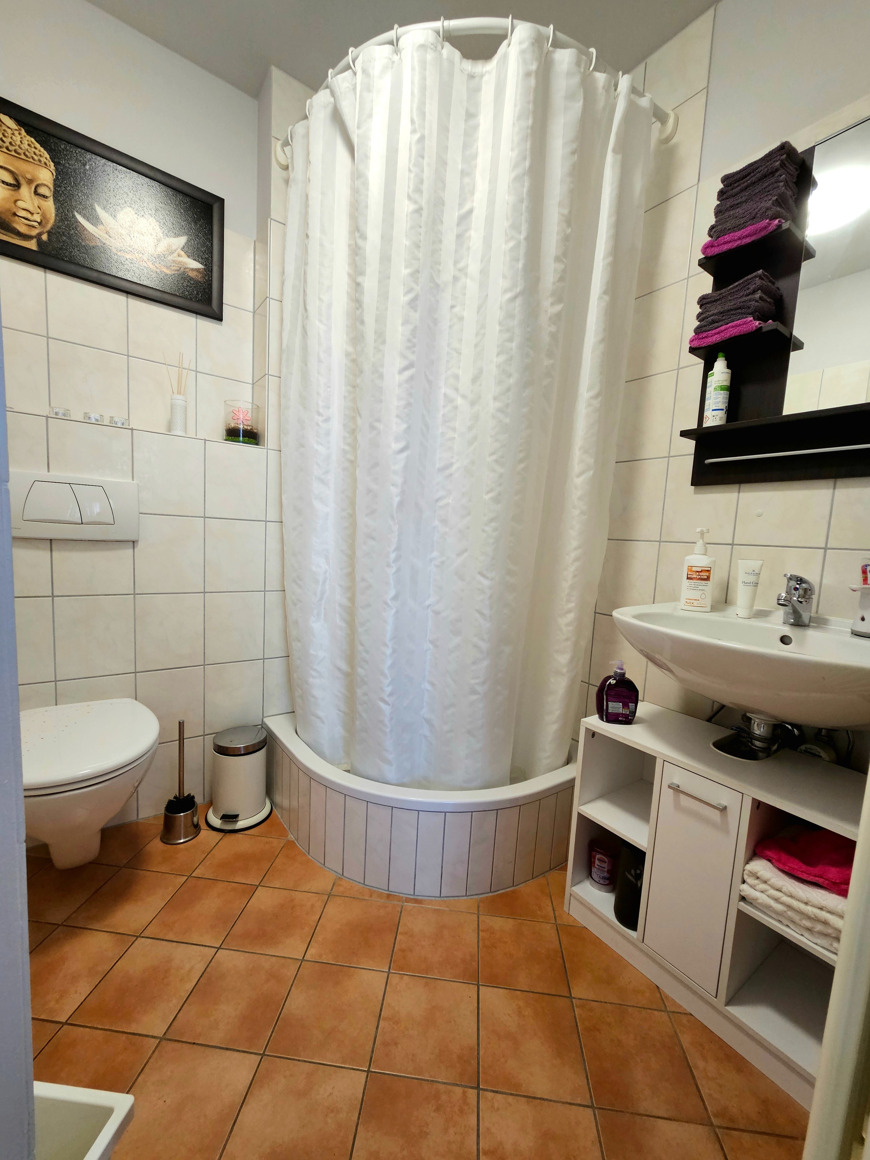 Weitere Ausstattungsgegenstände wie Waschmaschine, Trockner, Kühlschrank, Spiegel, Konsolen-Schminktische oder Vitrinen für Kosmetik-Produkte können gegebenenfalls nach Absprache mit übernommen werden.