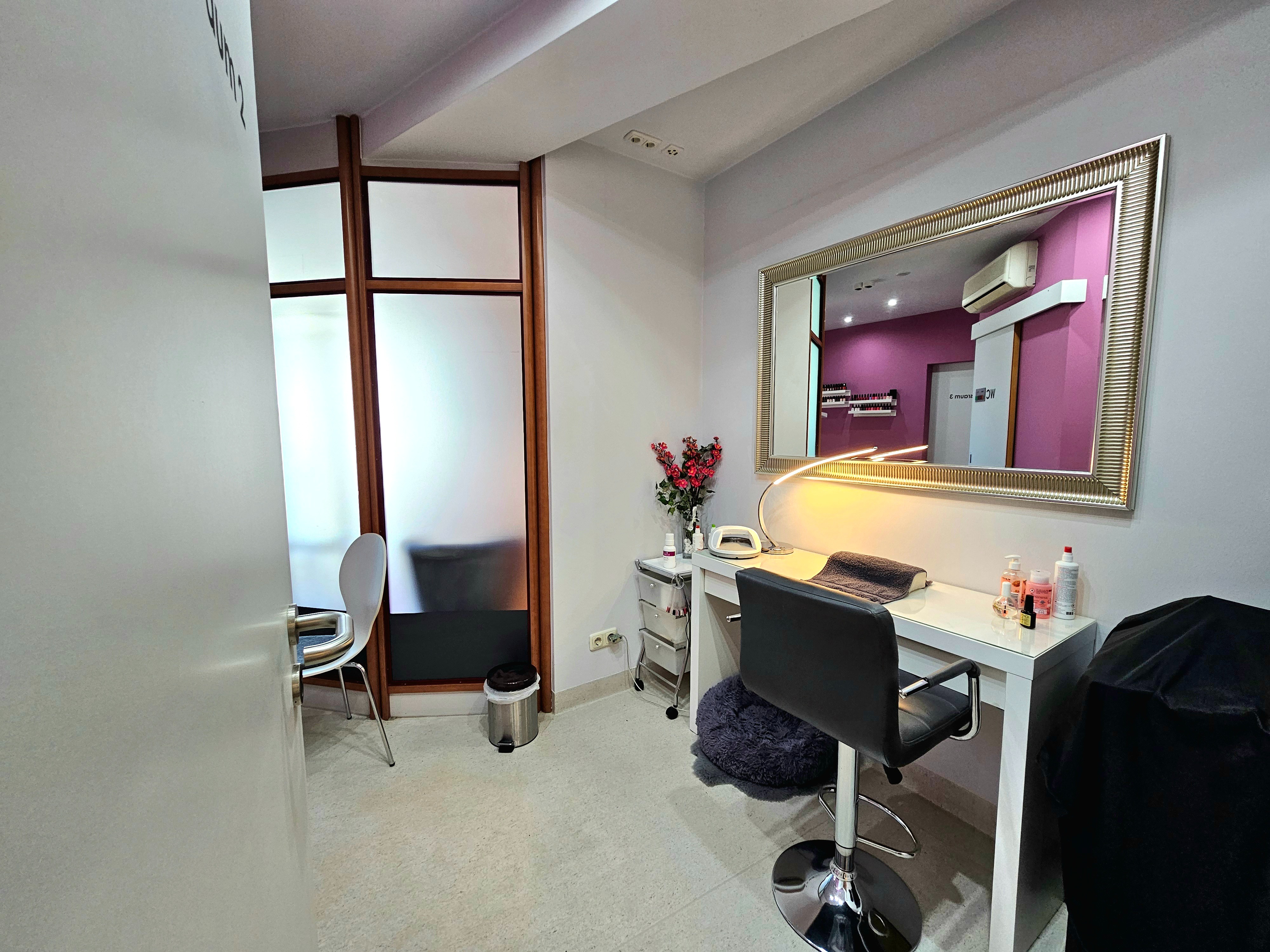 Das Studio ist mit einer Klimaanlage ausgestattet, verteilt sich auf insgesamt 90 m² und bietet neben einem hellen und freundlich gestalteten Empfangsbereich 3 Behandlungszimmer, einen Hauswirtschaftsraum, einen Officebereich, ein Badezimmer sowie eine kleine Kitchenecke. Die gesamte Ausstattung befindet sich in einem tadellosen, neuwertigen Zustand und ist in der Ablösesumme inbegriffen.