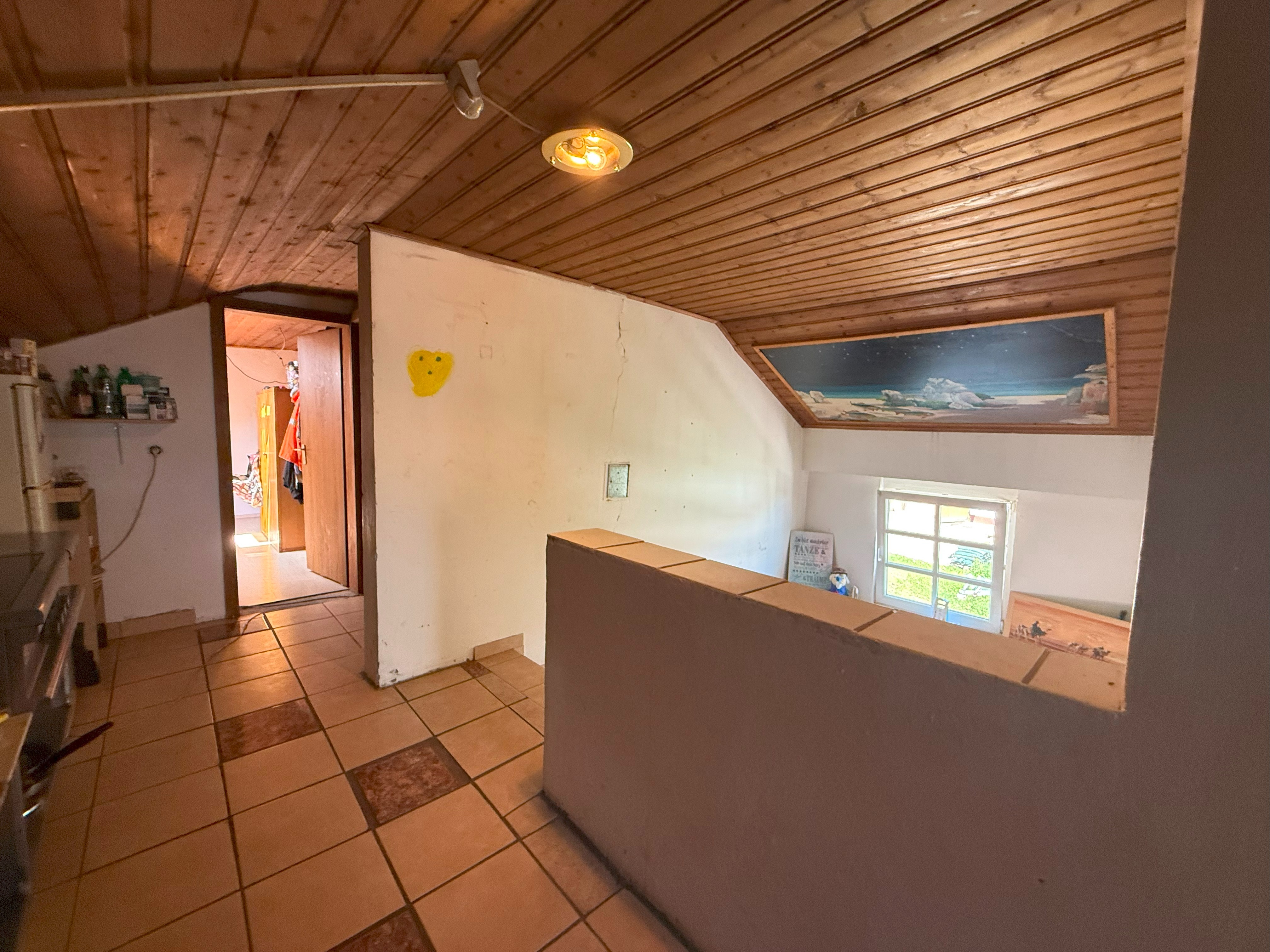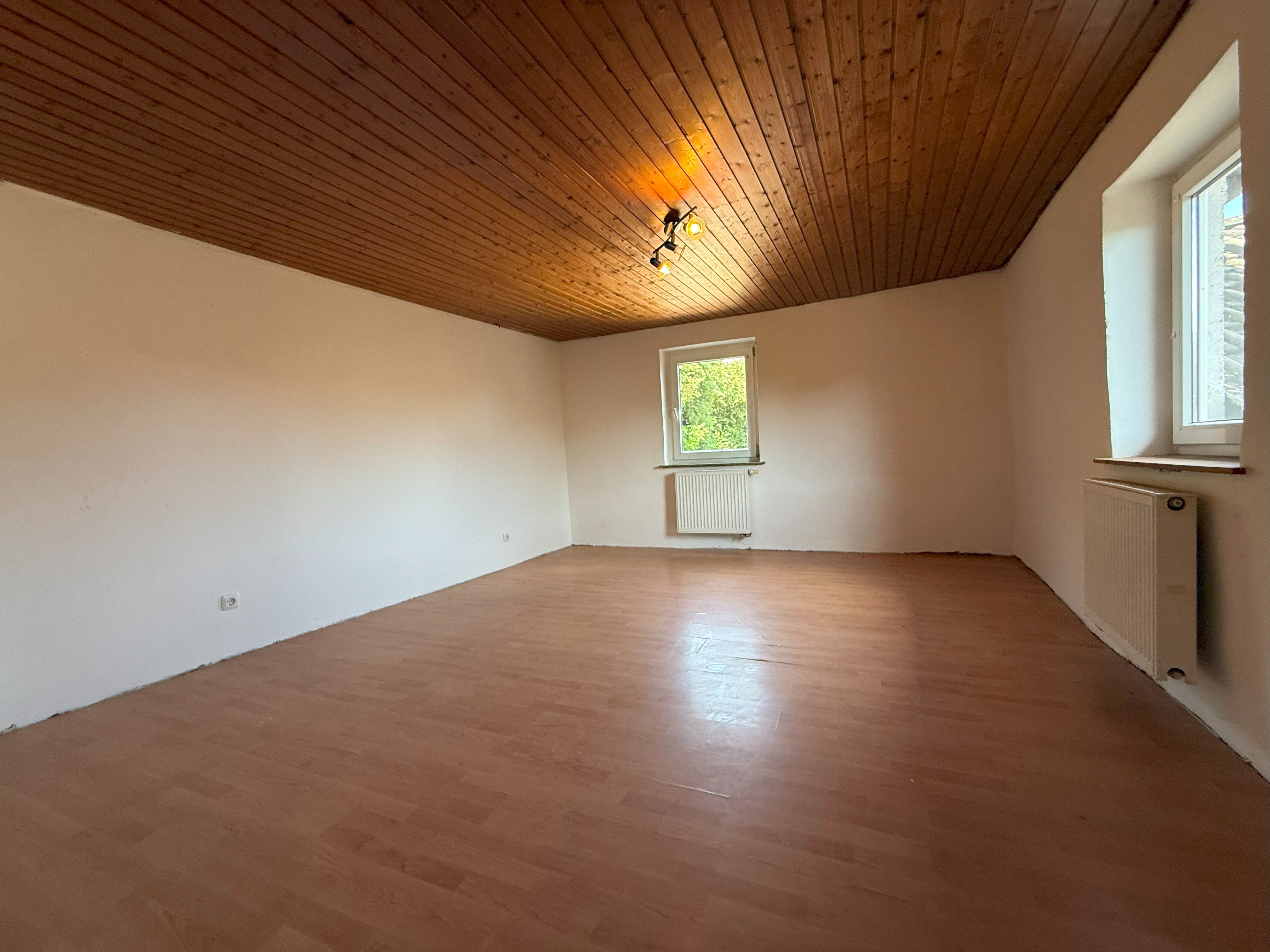 DG: Die Fläche im Dachgeschoss stellt eine Ausbaureserve dar und besticht durch die massiven, alten Holzbalken auf Sicht.
