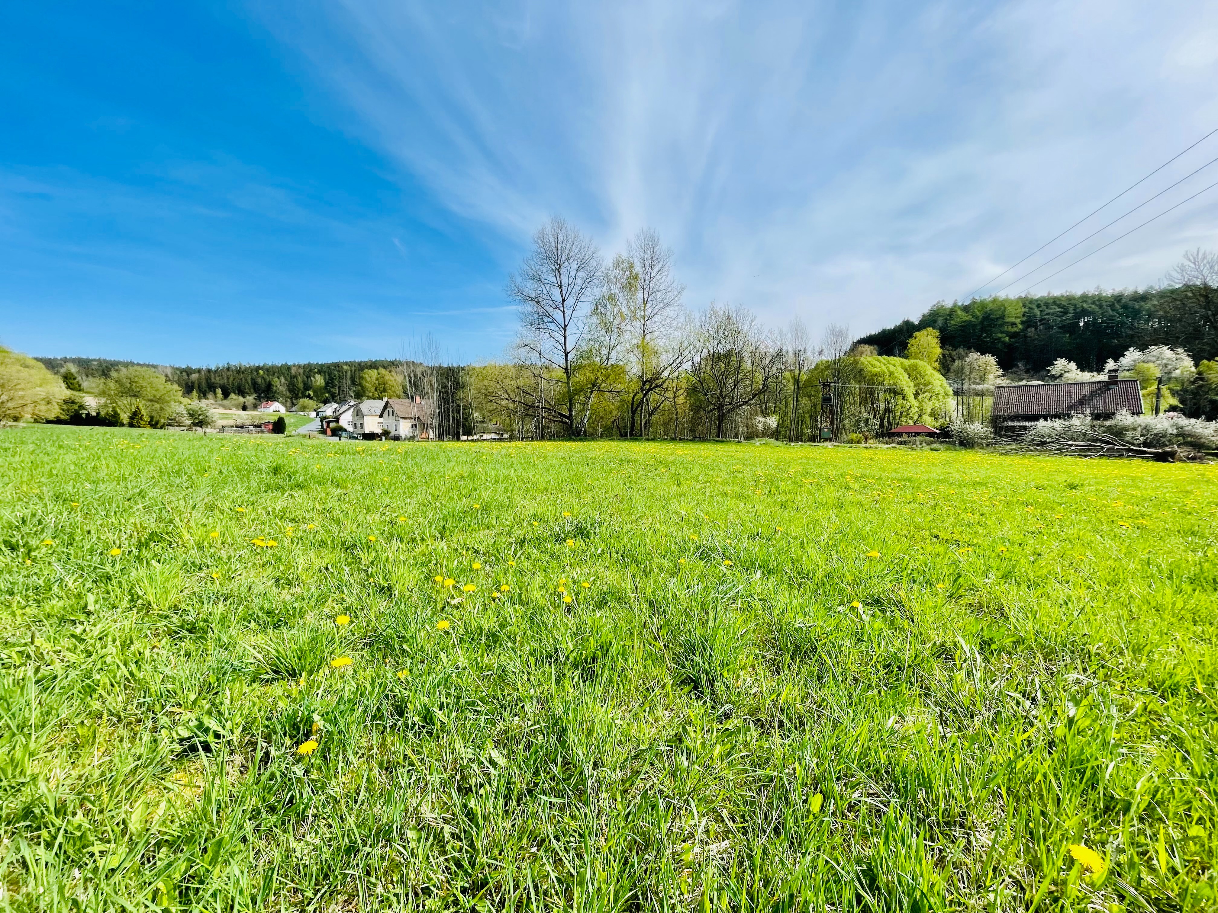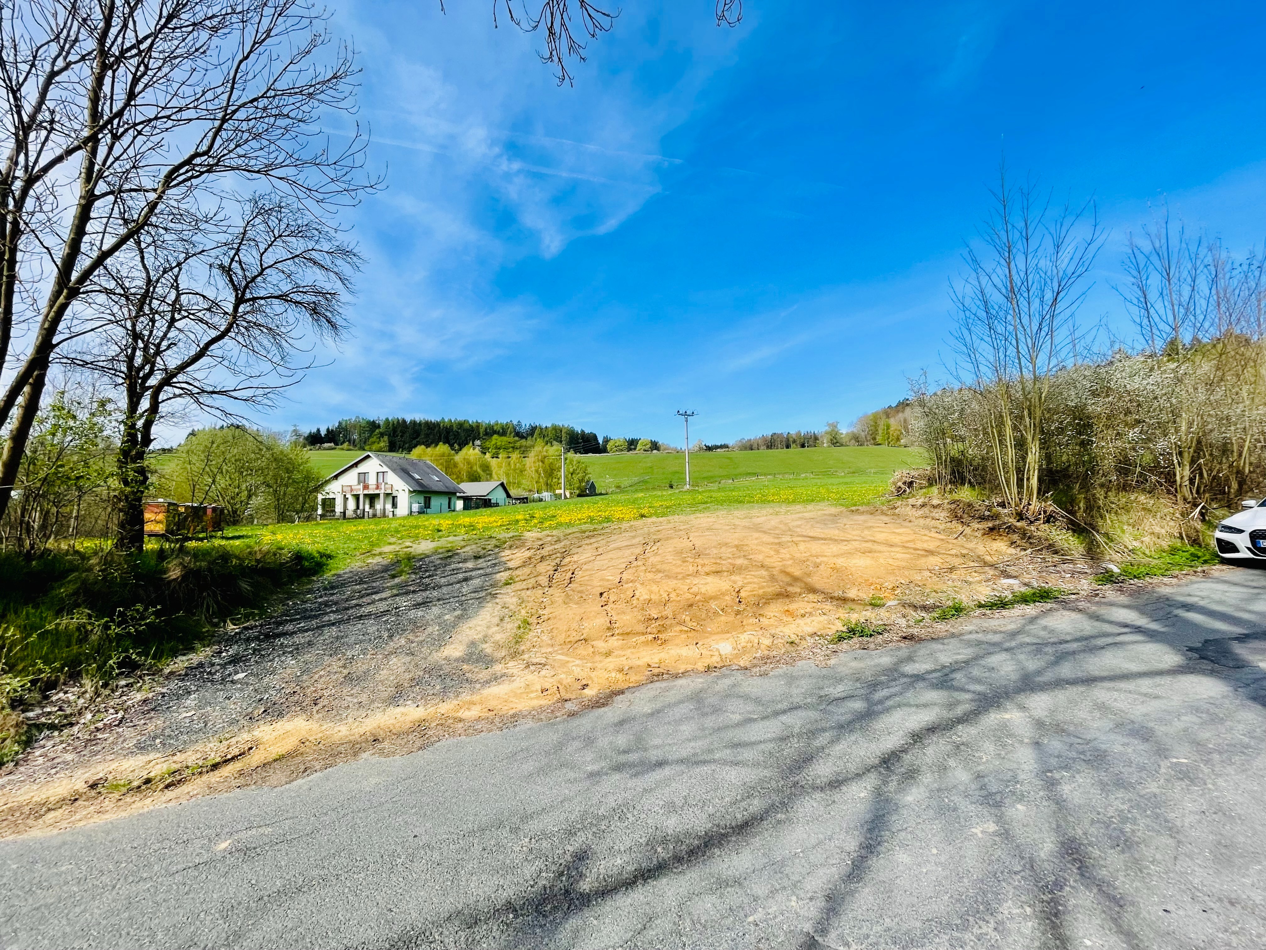 Schönes nach Süden ausgerichtetes Baugrundstück und Wiesenflächen im Außenbereich der Gemeinde Smolov im Landkreis Domazlice.